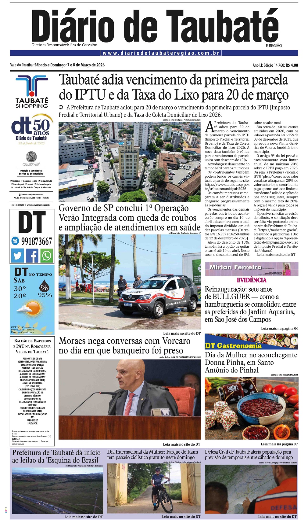 Prefeitura de Taubaté realizará o pagamento do 13º a Servidores dia 11