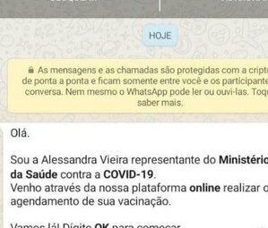 Criminosos alegam que estão fazendo um falso cadastro de vacinação e pedem que o usuário envie o código de verificação Criminosos...