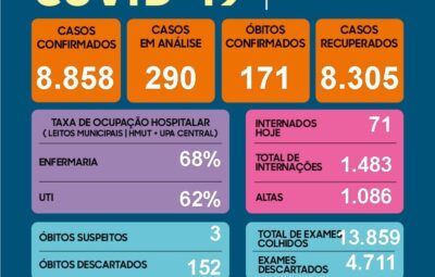 Taubaté tem 171 mortes e chega a 8.858 casos de coronavírus