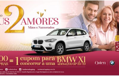 O centro de compras também está em andamento com a promoção “Meus dois amores”, que terá o sorteio de uma BMW X1, 0Km, modelo 2019...