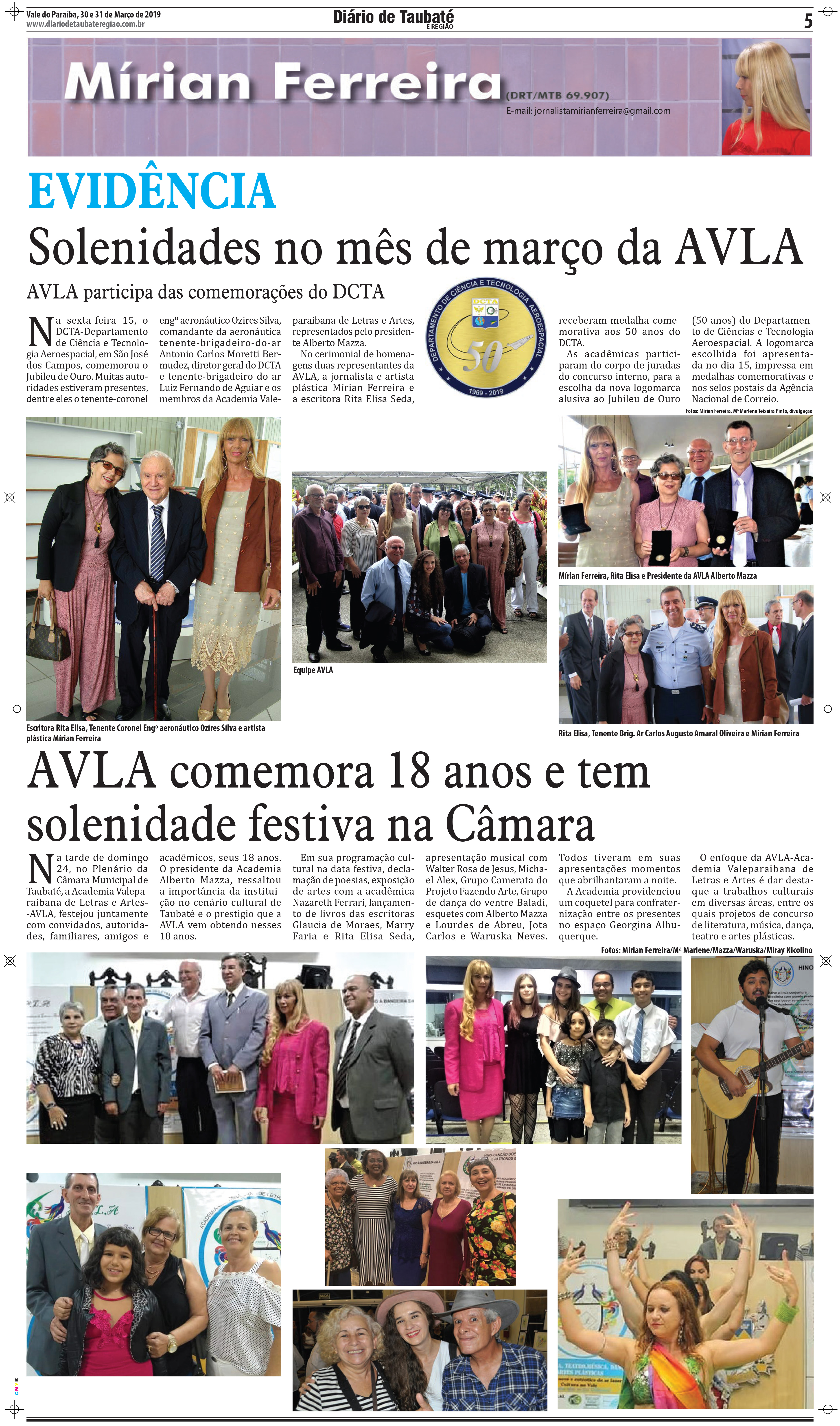 Solenidades no mês de março da AVLA